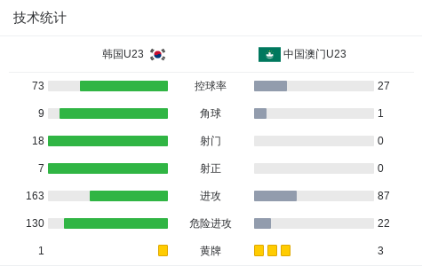 北京时间9月3日U23亚洲杯 预选赛 第1轮,韩国U23对阵中国澳门U23。最终比分韩国U23 5-0 中国澳门U23。
