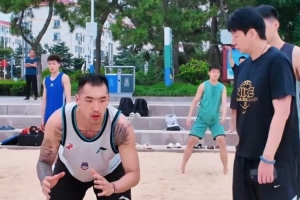 该博主写道:“山东高速男篮开始威海集训,清早六点前往海边进行拉练,邱彪单独指导陶汉林。”